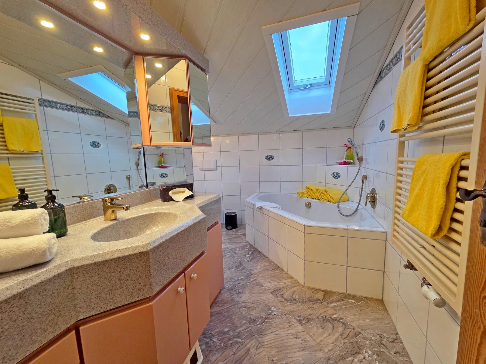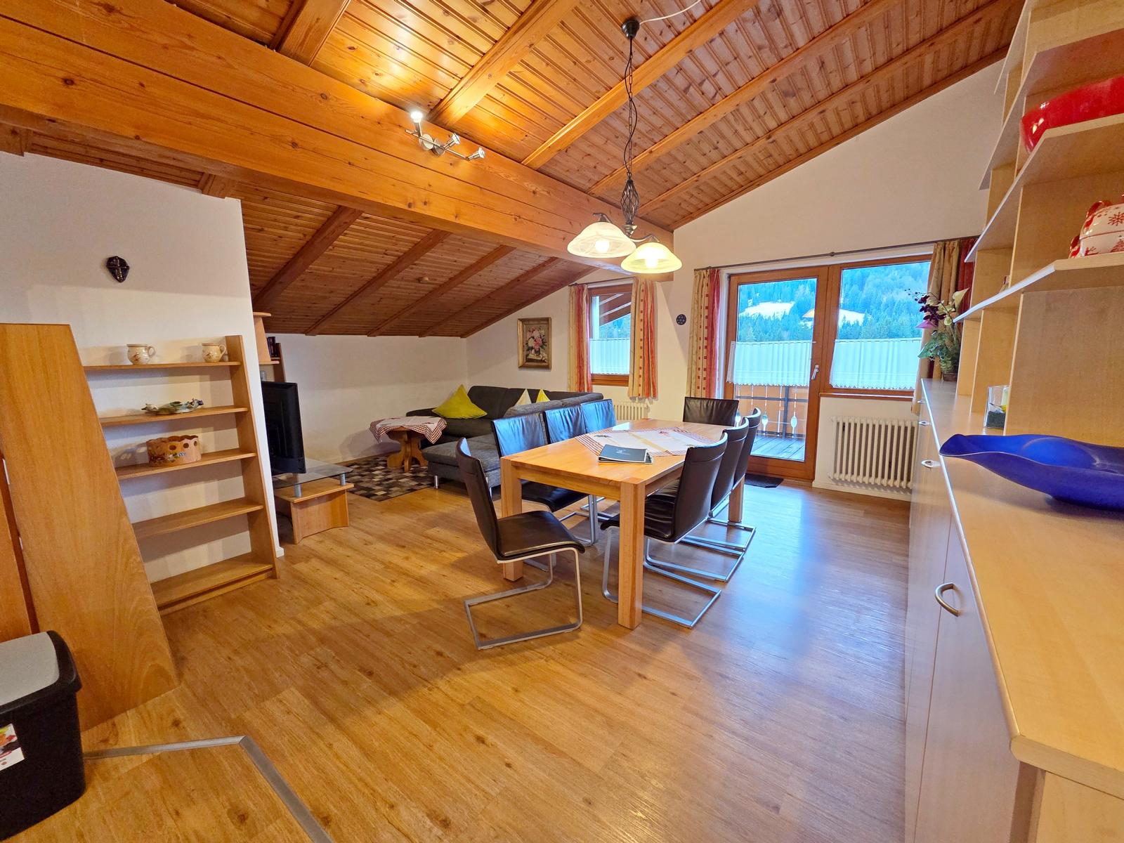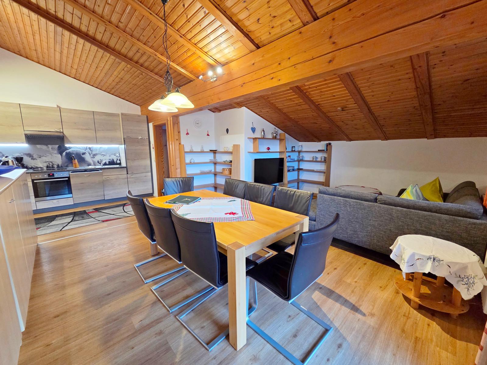 Unsere modern eingerichtete Familiensuite Bergblick mit ca. 95 m² bietet der ganzen Familie viel Platz. Mit großem, gemütlichem Wohnraum, einem großen Esstisch, drei separaten Schlafzimmern (2 x mit Doppelbett + 1 x Zweibett-Zimmer) und 2 zusätzliche Schrankbetten im Wohnzimmer findet wirklich jeder einen Platz. Eine komplett ausgestattete Küche mit Backofen und Spülmaschine machen das Kochen zum Kinderspiel. Ein Bad mit Eckwanne, separater Dusche, WC, großem Spiegel und Fön, ein 94cm Flat-TV mit Radioempfang, ein Tresor und der ca. 30 m² große Südbalkon lassen keine Wünsche offen.