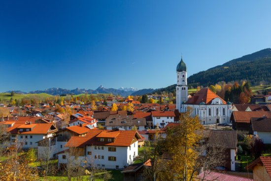 liegt mit seinen Ortsteilen auf rund 900 m am Fuße der Alpspitze (1575 m) und des Edelsbergs (1630 m). Unweit der oberen Wertach und des Grüntensees, ganz zentral im Herzen des Allgäus. Eingebettet in eine märchenhafte Landschaft aus grünen Hügeln und blauen Seen liegt dieser verträumte und malerische Ort, der seinen Entdeckern ein zauberhaftes Alpenpanorama bietet.