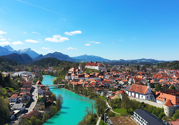 lassen Sie die malerische Altstadt Füssens auf sich wirken, genießen Sie “die romantische Seele Bayerns“. Die unterschiedlichen Epochen bilden hier eine malerische Kulisse. Die verwinkelten Gassen sind Zeugen einer florierenden, mittelalterlichen Stadt. Über ihnen recken sich hohe, gotische Häusergiebel in den Himmel und das Hohe Schloss. Neben den Resten der Stadtmauer finden Sie reich dekorierte Kirchen aus der Zeit des Barock und Rokoko. Füssen ist wie geschaffen zum Shoppen, Bummeln, Relaxen und Genießen. Der Lechfall ist eine Besonderheit und ein gut besuchtes Ausflugsziel.