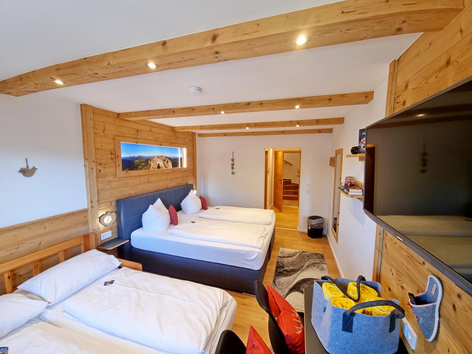 Diese Suite lässt wirklich kein Wünsche offen. Die modern, zeitlos und luxuriös eingerichtete Wellnesssuite (160 m²) mit großem, gemütlichem Wohnraum mit Essbereich, drei separaten Schlafzimmern (3 x mit Doppelbett + 2 Doppelschlafcouchen), mit eigenen Badezimmern und privatem Balkon bietet einfach ALLES. Die komplett ausgestattete Küche, ein Wellnessbereich mit Sauna, Erlebnisdusche und Whirlwanne, Sat-TV in jedem Zimmer, Radio, Tresore und der große Südbalkon mit unglaublichem Panorama machen das Angebot komplett.